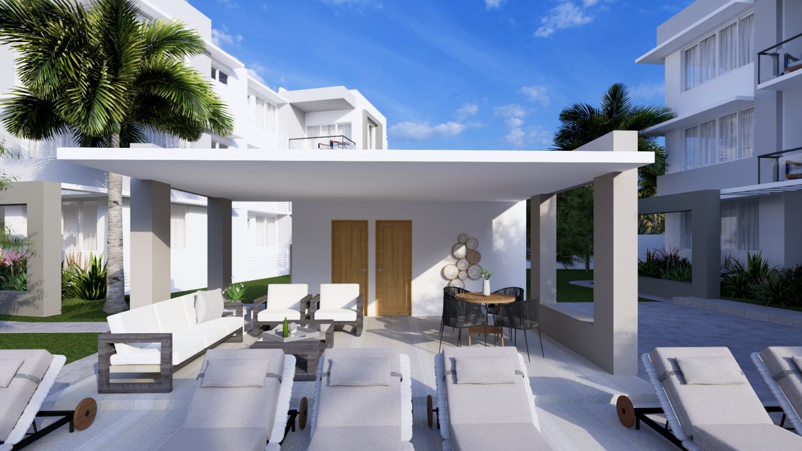 - Terraza multiusos junto a la piscina